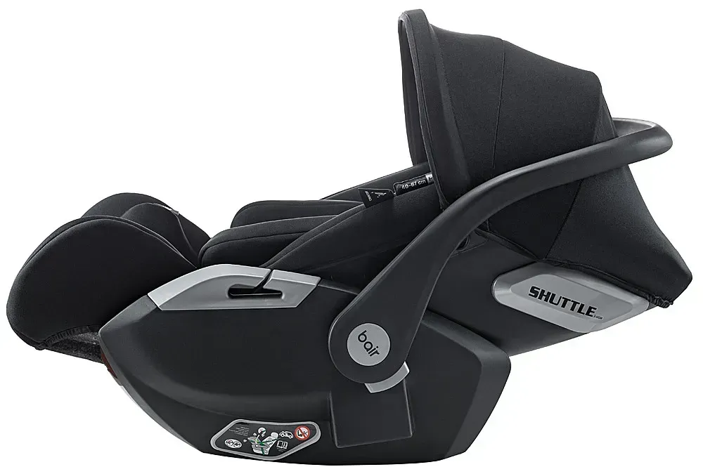 Автокресло Bair Shuttle - предназначено для перевозки в автомобиле младенцев с рождения до 15 месяцев самым безопасным способом - против хода движения. Крепление детского кресла в автомобиле осуществляется при помощи штатного 3-точечного ремня автомобиля, либо на базу изофикс Bair Relax Base (продается отдельно). Ребенок в обоих случаях удерживается внутренними 3-точечными ремнями с мягкими накладками. Для комфортного и правильного положения новорожденного предусмотрен дополнительный вкладыш, который используется примерно до 6-7 месяцев, и убирается при росте ребенка более 60 см. Подголовник сиденья регулируется по высоте вместе с внутренними ремнями одним движением. Чехол, выполненный из тактильно приятного материала, легко снимается для стирки. Многопозиционный большой капюшон защищает от солнца и осадков, а при необходимости легко убирающийся в корпус. Предусмотрена удобная ручка для переноски, которая регулируется в четырех положениях. Кресло можно использовать как систему для путешествий, установив на шасси коляски, при помощи соответствующих адаптеров.