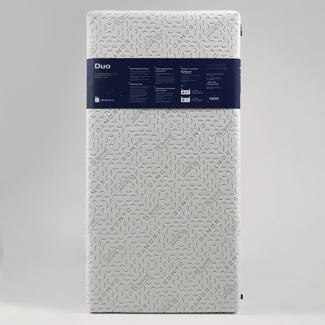 DUO – двусторонний детский матрас, где сторона А – жесткая, предназначена для новорожденных деток. Сторона Б – ортопедическая – для деток от 1 года.