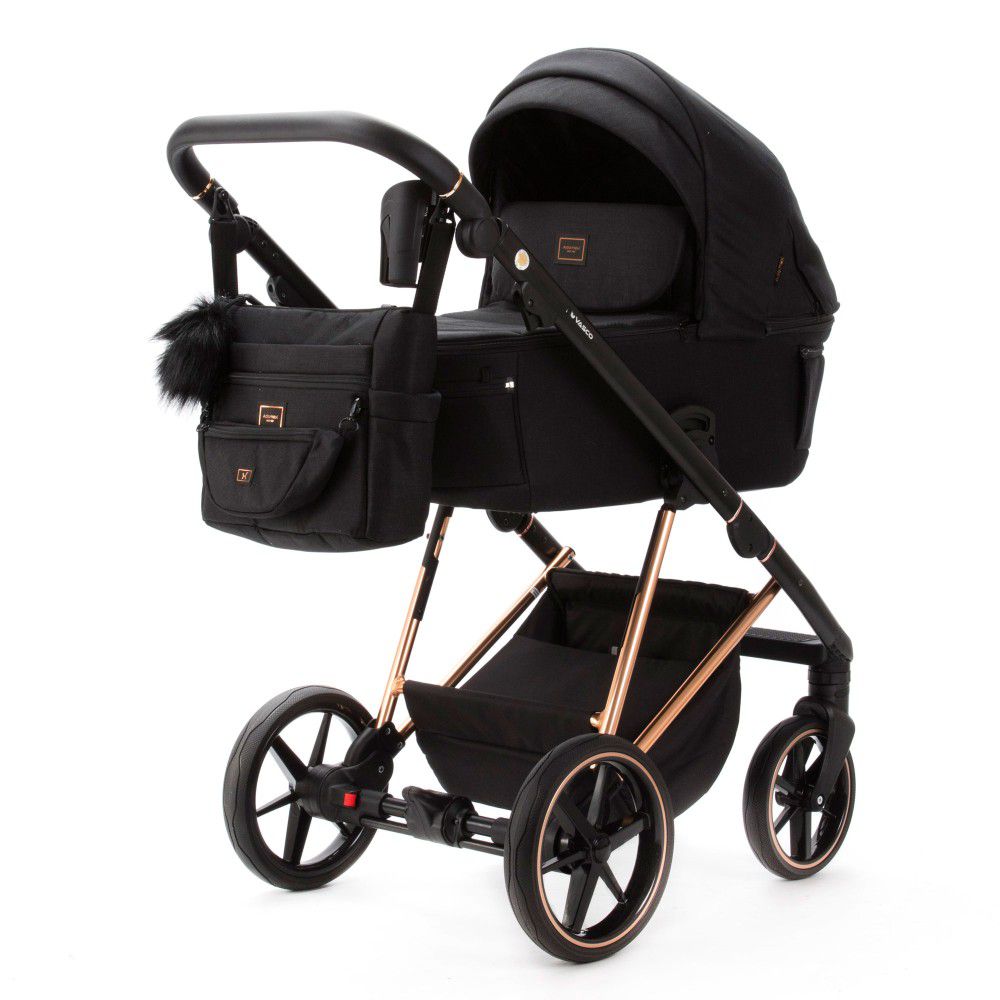 Коляска 2 в 1 Adamex Vasco TK-619 черная ткань медь рама