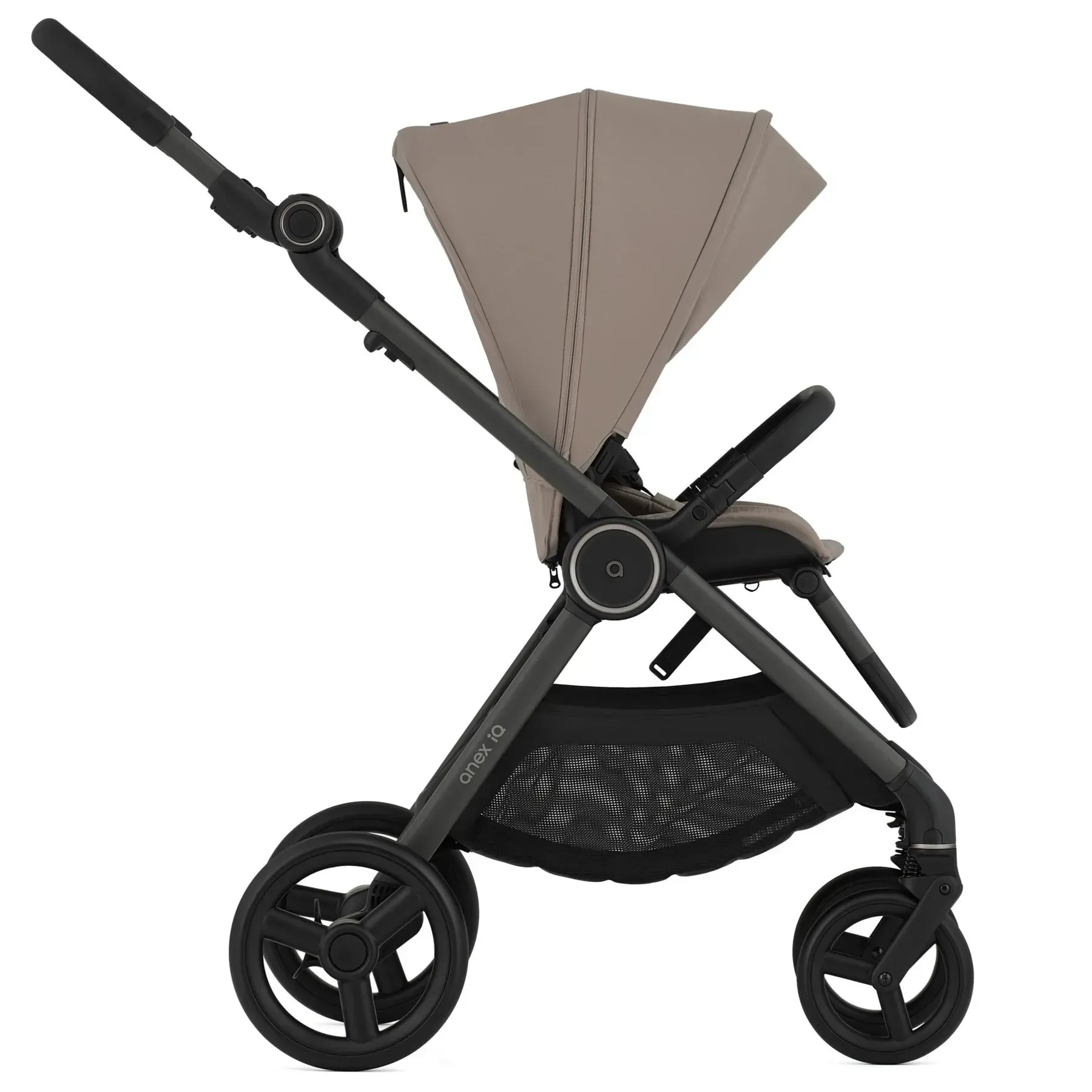 Встречайте новые, невероятно стильные цвета 2025 / 2026 года вашей любимой коляски Anex iQ! Это первая коляска, которая объединяет люльку, прогулочный модуль и багги в одной системе. Забудьте о необходимости покупать несколько колясок – iQ будет сопровождать вашу семью от рождения малыша до 4 лет. Секрет универсальности Anex iQ кроется в умной конструкции рамы из алюминия. Специальные зажимы, интегрированные в дизайн коляски, позволяют за считанные секунды менять ширину рамы: