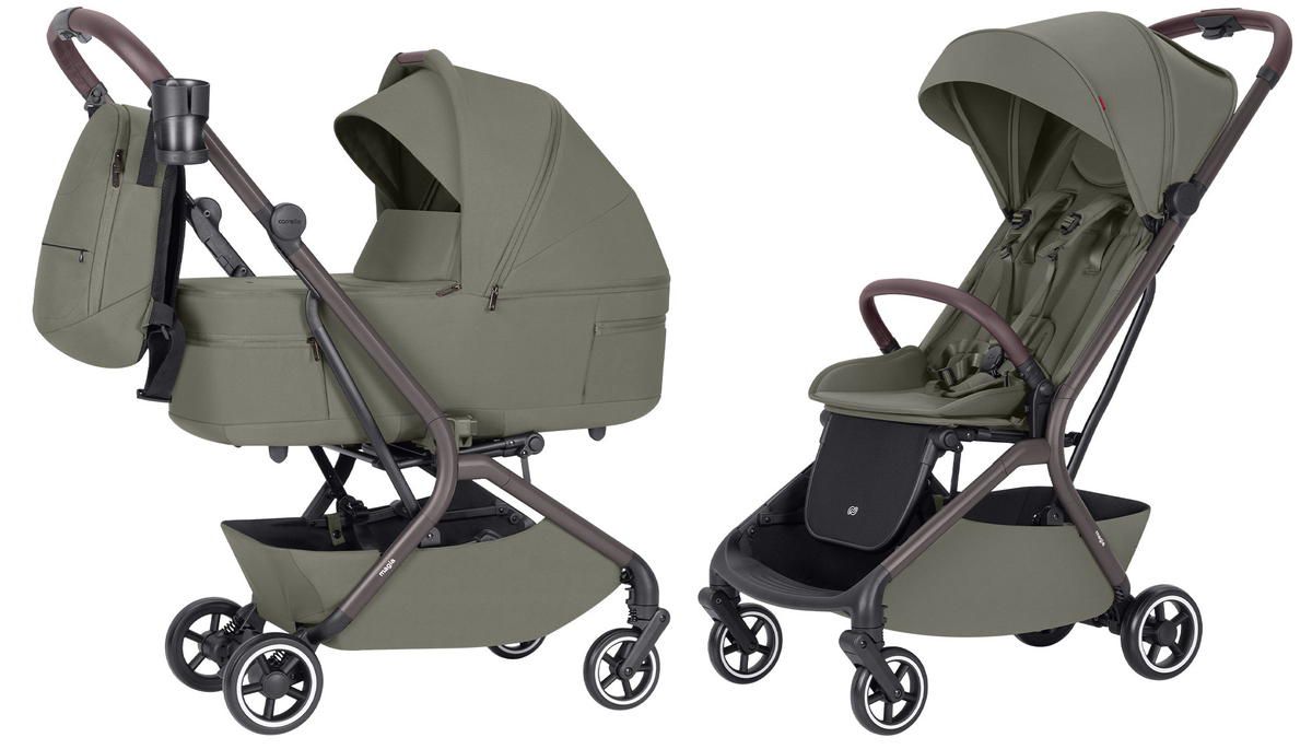 - Шасси коляски компактно складывается не только с люлькой, но и с прогулочным блоком.