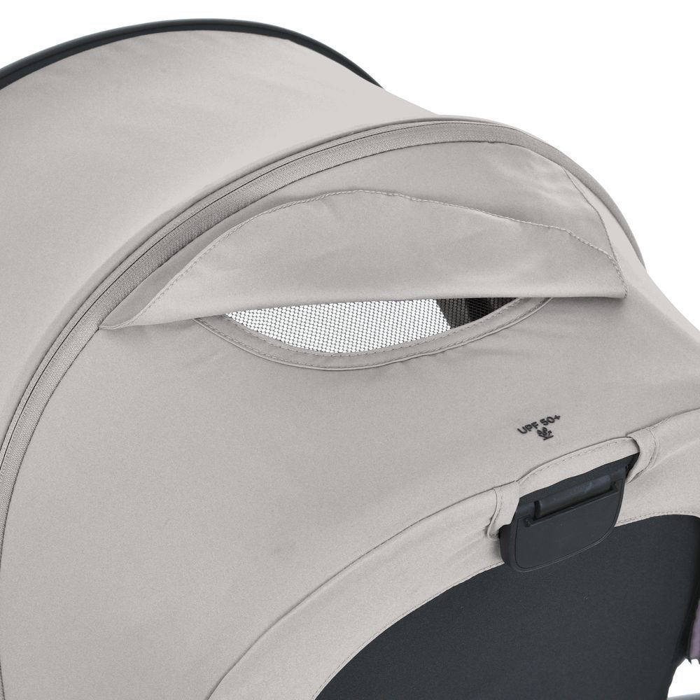 - Глубокий капюшон со смотровым окном для защиты от солнца и ветра