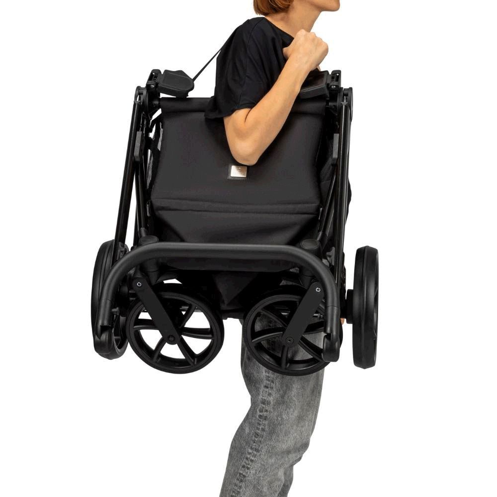 Ремень на шасси позволяет удобно носить сложенную коляску на плече.