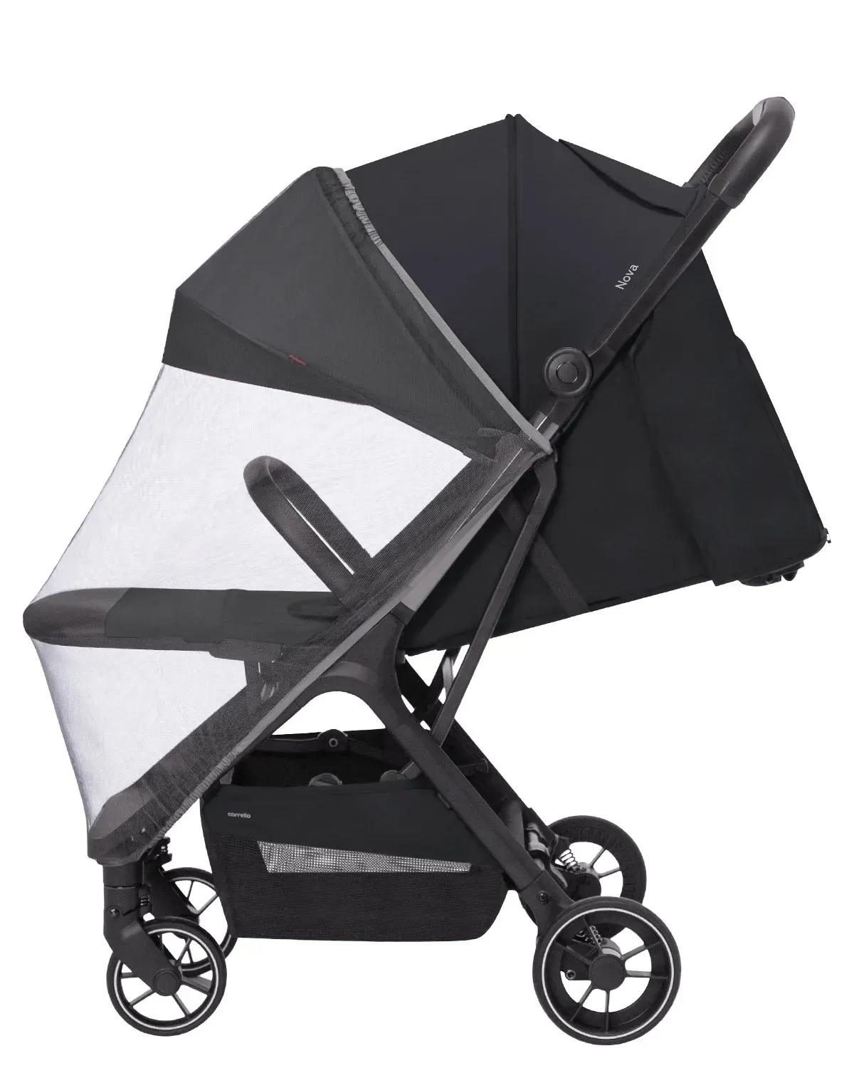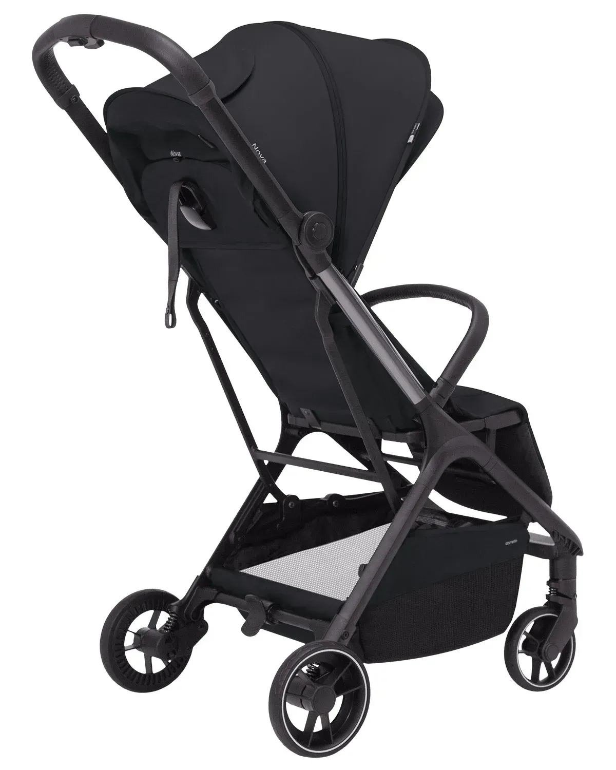 Пятиточечные ремни безопасности с мягкими плечевыми накладками не позволят пассажиру неожиданно покинуть транспортное средство. Высота спинки Nova - 50 см, а высота капа над сиденьем - 61 см, что позволяет с комфортом расположиться и подросшему ребёнку, тем более, что максимальная нагрузка на коляску 22 кг.