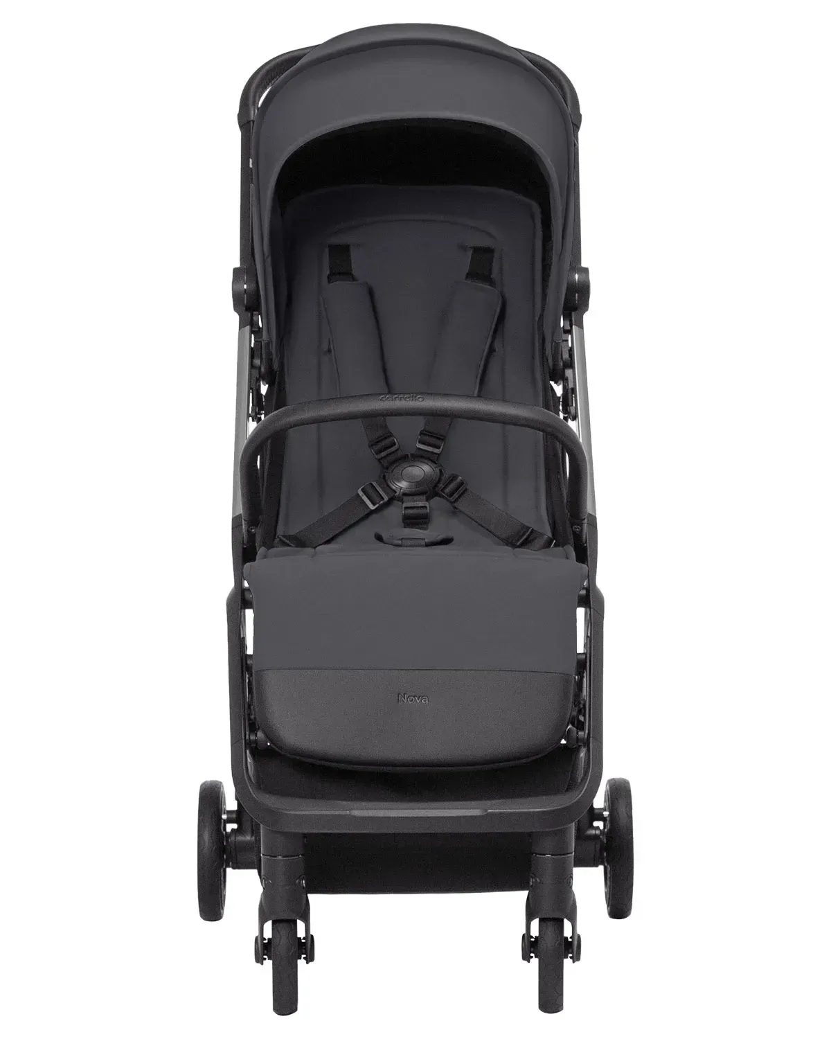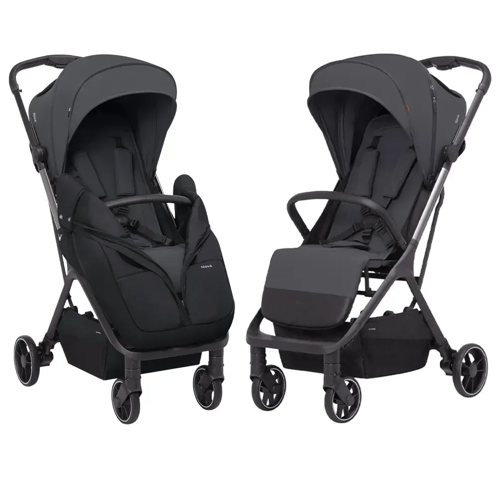 Пятиточечные ремни безопасности с мягкими плечевыми накладками не позволят пассажиру неожиданно покинуть транспортное средство. Высота спинки Nova - 50 см, а высота капа над сиденьем - 61 см, что позволяет с комфортом расположиться и подросшему ребёнку, тем более, что максимальная нагрузка на коляску 22 кг.
