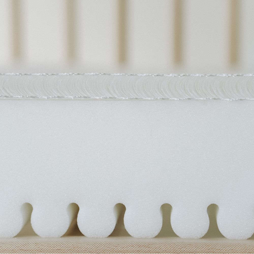 Съемный чехол матраса изготовлен из дышащей ткани – Tencel. Гипоаллергенный материал из эвкалиптовых волокон мягкий, крепкий и хорошо пропускает воздух, что обеспечивает комфортный сон ребенка. Чехол из Tencel эффективно отводит влагу, предотвращает перегрев и подходит для детей с чувствительной кожей. Для удобства чехол имеет застежку-молнию на три стороны, это позволяет легко снимать его для стирки и поддерживать правильную гигиену спального места ребенка.