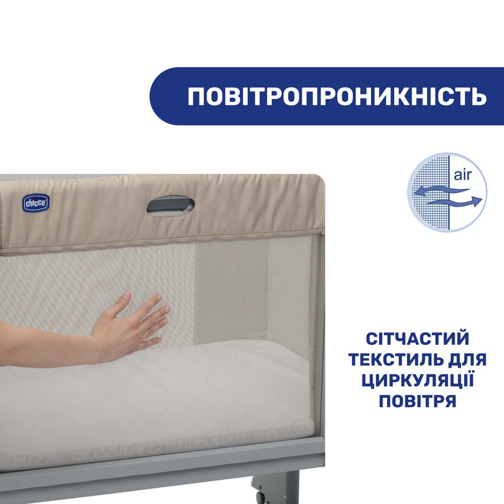 - Максимальная вентиляция. Окошки из сетки обеспечивают хорошую циркуляцию воздуха внутри кроватки.