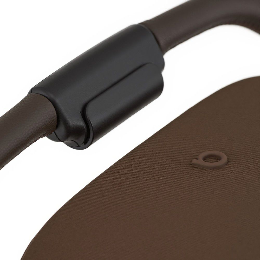 - Кожаный бампер коляски можно полностью снять одной рукой, поочередно отсоединив его с каждой стороны.