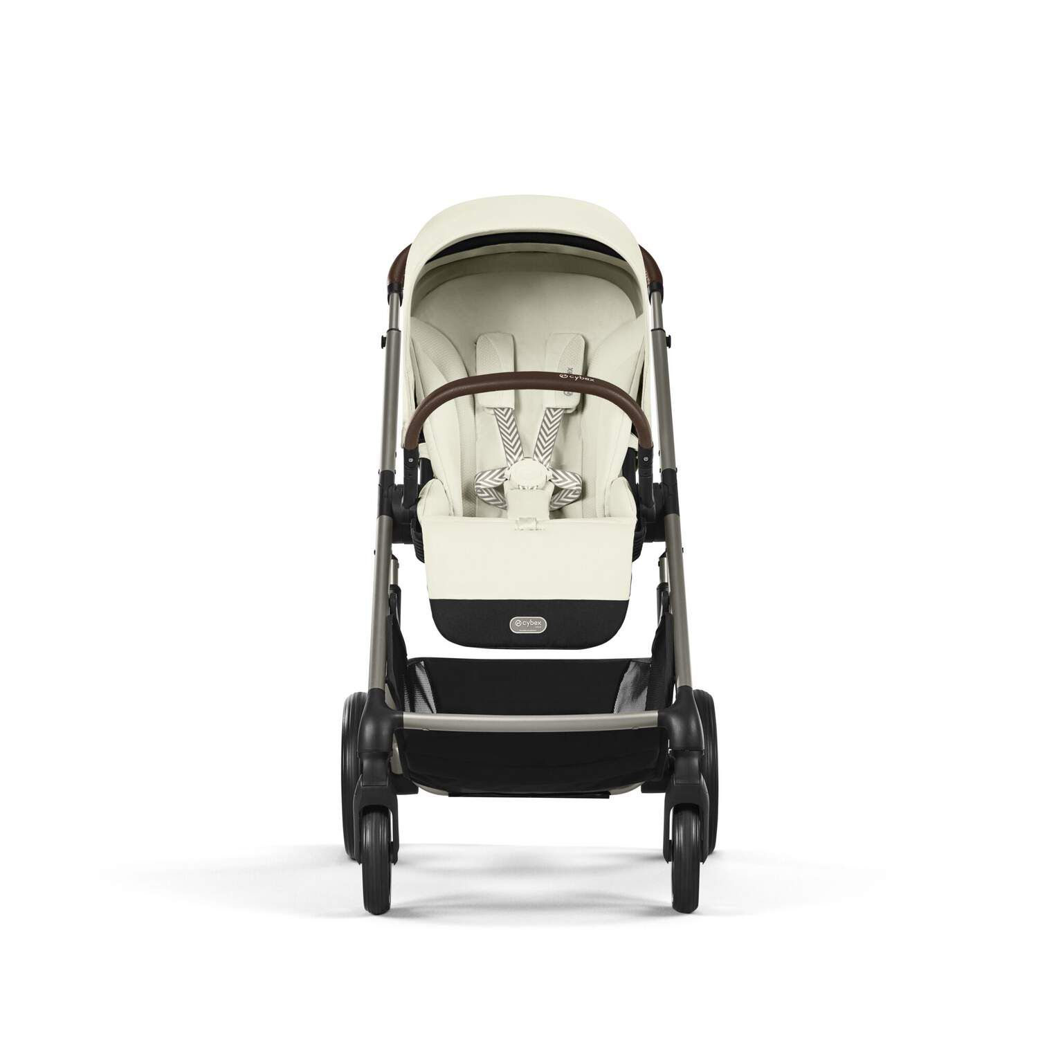 Шасси коляски Cybex Balios продумано до мелочей. Оно легко и просто складывается вместе с прогулочным сиденьем, тип складывания - "книжка". Коляска в сложенном виде устойчиво стоит вертикально и занимает очень мало места. Вы можете разместить сложенную коляску у себя дома в любом месте.