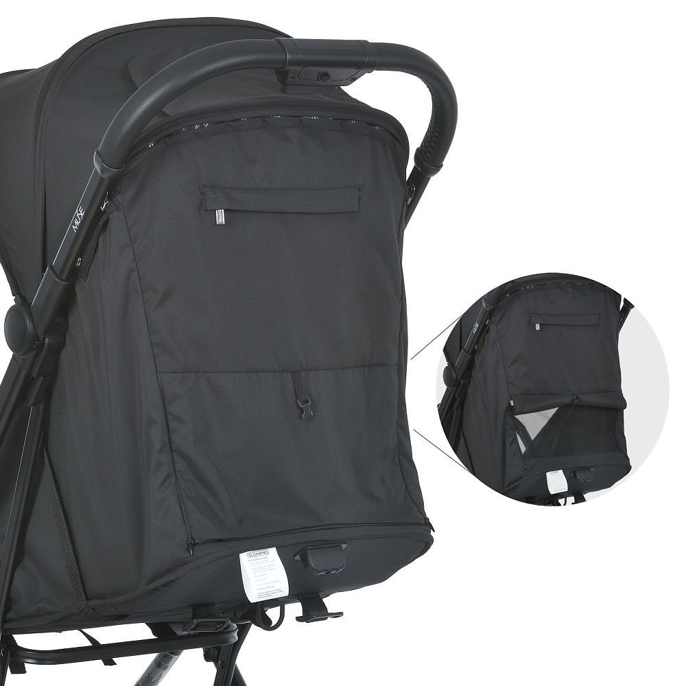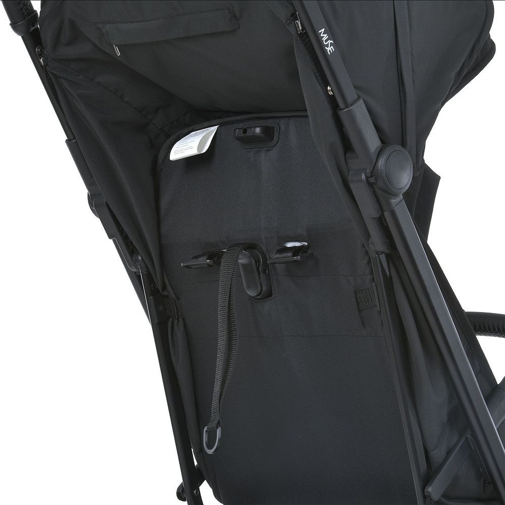 Автоматическая сборка является особенностью коляски , ведь нажимая на две кнопки - предохранитель и основную, вы в одно мгновение превращаете полноценную коляску в компактно сложенную и удобную для переноски. В сложенном виде Muse стоит самостоятельно, присутствует удобный ремешок для переноски.