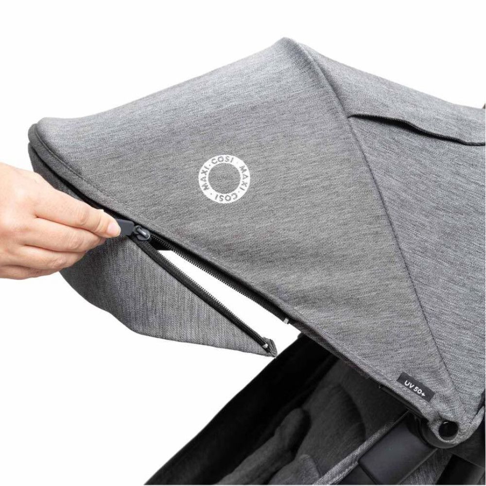 - Выдвижной навес с защитой от ультрафиолета UPF 50+: обеспечивает улучшенную защиту от солнца и дополнительную площадь покрытия для отдыха на открытом воздухе, а также имеет смотровое окошко.