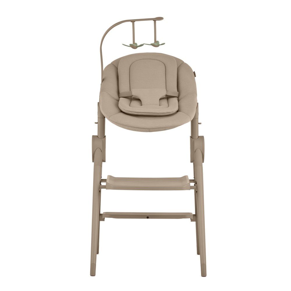 - сиденье для новорождённого (0-6 мес.) - с мягким эргономичным вкладышем, регулировкой наклона и высоты, игрушками для зрительной стимуляции и трёхточечным ремнём безопасности;