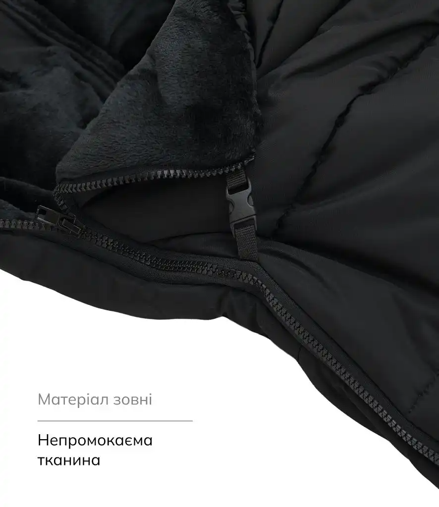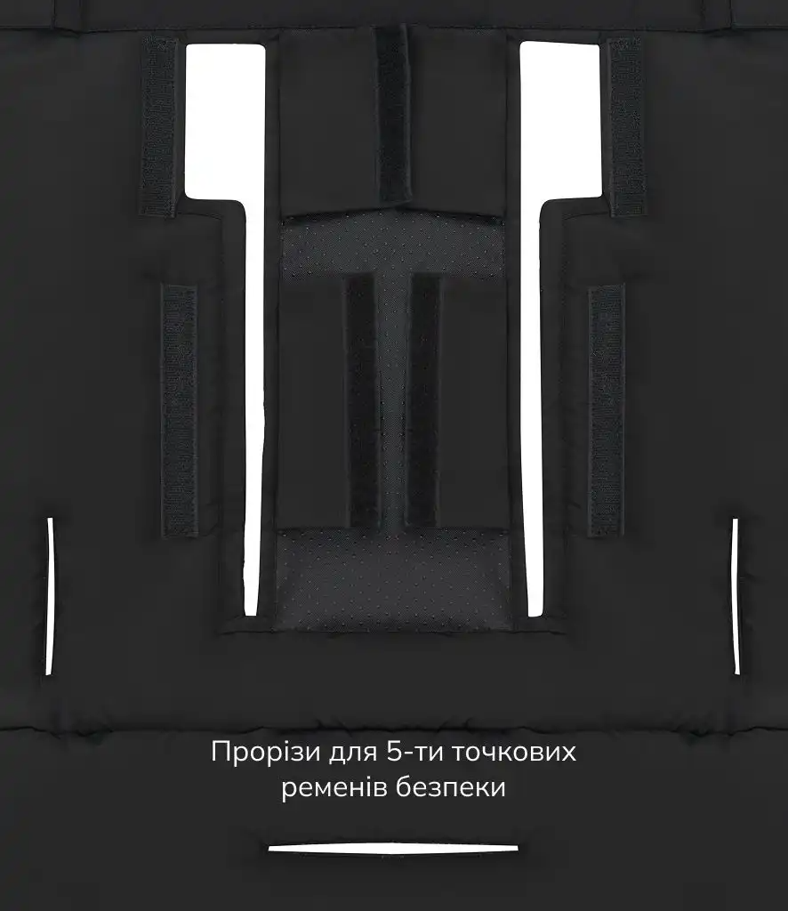 - Конверт имеет регулировку длины – нижняя часть длиной 27 см отстегивается с помощью молний.