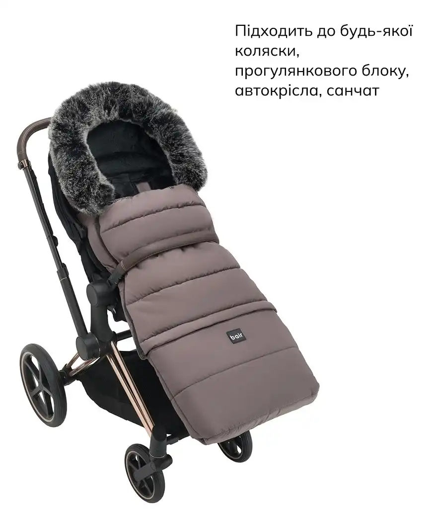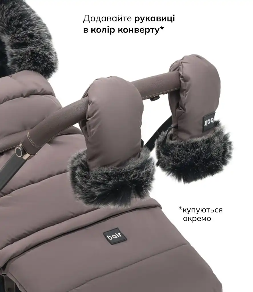 Зимний конверт Bair Arctic - для комфортных прогулок с малышом от 0 до 4 лет. Обновлена версия популярного конверта Arctic получила несколько новых цветов и усовершенствованный крой. Конверт имеет регулировку длины – нижняя часть длиной 27 см отстегивается с помощью молний, благодаря такой возможности аксессуар прослужит вам в два раза дольше. Для крепления Bair Arctic предусмотрены прорези под пятиточечные ремни безопасности, что делает его универсальным для любых колясок или санок. Верх конверта стягивается в капюшон, и отделан меховой опушкой, сделанной из высококачественного искусственного противоаллергенного меха. При необходимости мех можно снять. Нижняя часть конверта может использоваться самостоятельно в виде сумки для мамы, она оснащена независимой молнией и ремнем. Для удобства использования есть молнии-застежки по бокам, которые позволяют быстро и легко уложить ребенка внутрь конверта.