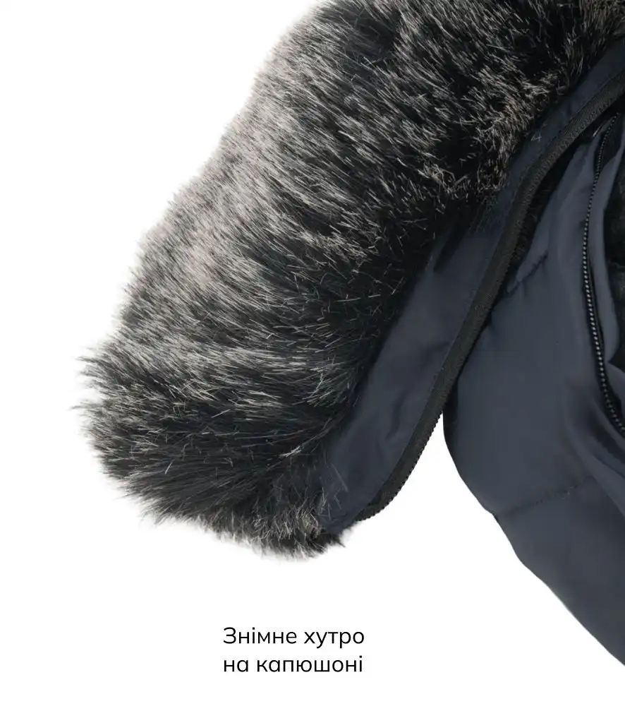 - глубокий капюшон плотно охватывает голову, защищая от ветра;