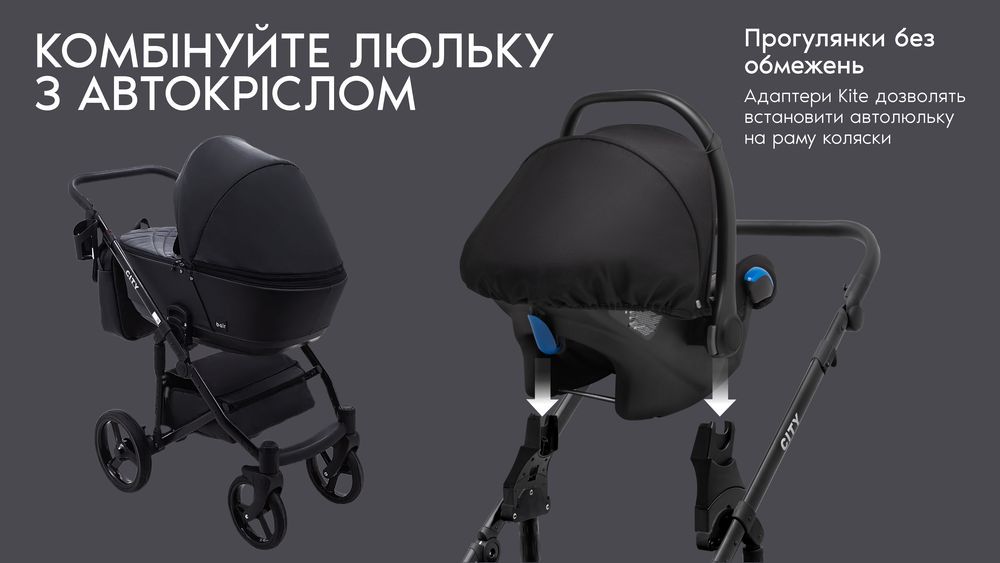 - Є можливість встановлення на шасі колясок за допомогою адаптерів.