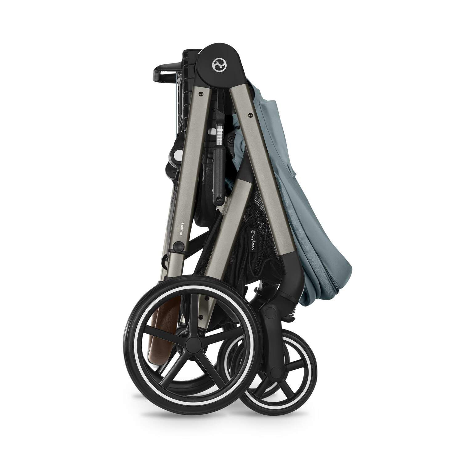 Шасі коляски Cybex Balios продумано до дрібниць. Воно легко і просто складається разом із прогулянковим сидінням, тип складання - "книжка". Коляска у складеному вигляді стійко стоїть вертикально і займає дуже мало місця. Ви можете розмістити складену коляску у себе вдома в будь-якому місці.